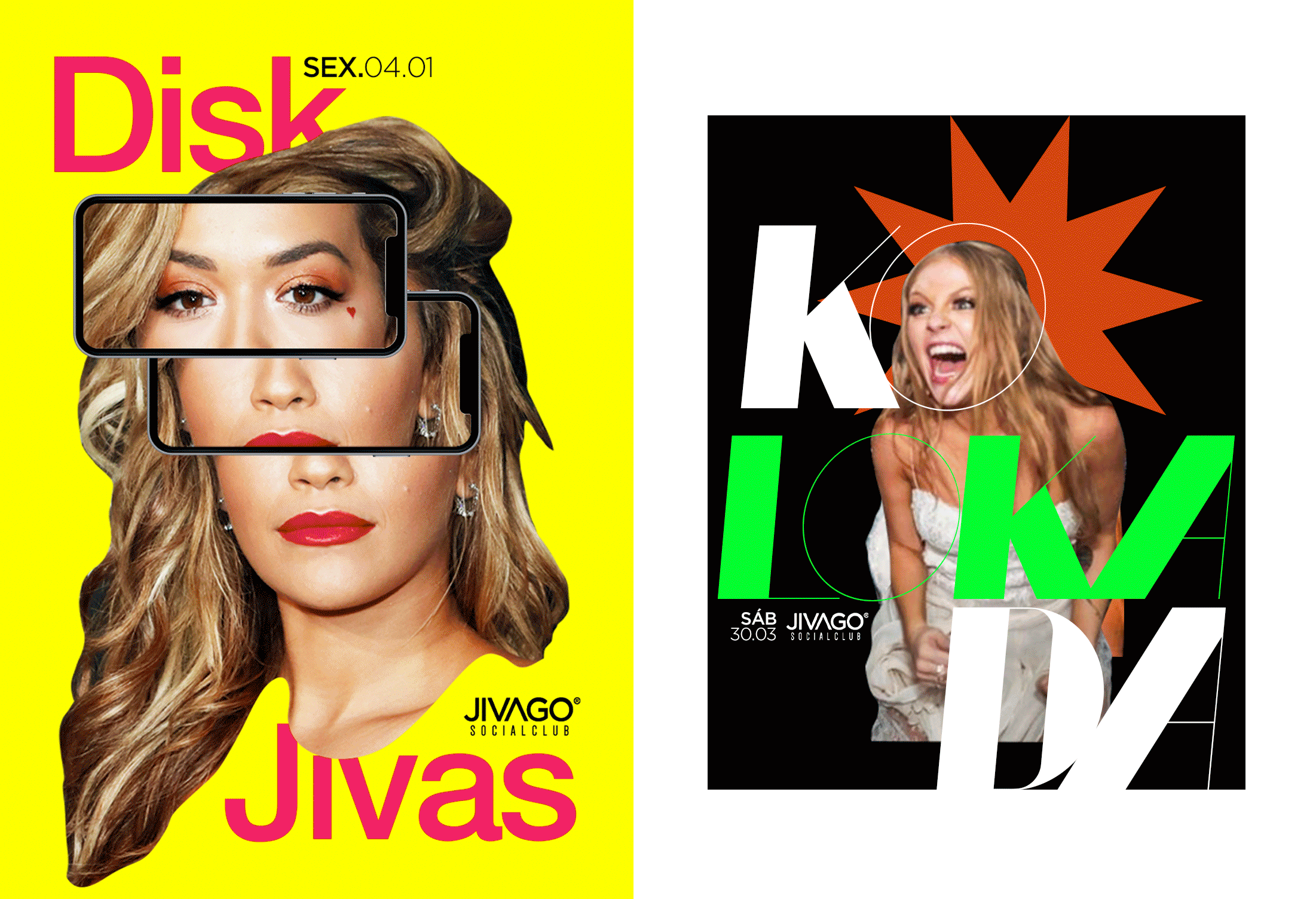 RGB Disco. This was the concept thought for the 11th anniversary of the club. A campaign was created using the RGB light effect, where a new image would come to life with each prevailing color. Having this idea in mind, we spread moving posters all over the place that danced together with the clubbers. We combined a Diva Disco look together with glamor, style, and drama, something that the public really enjoys.