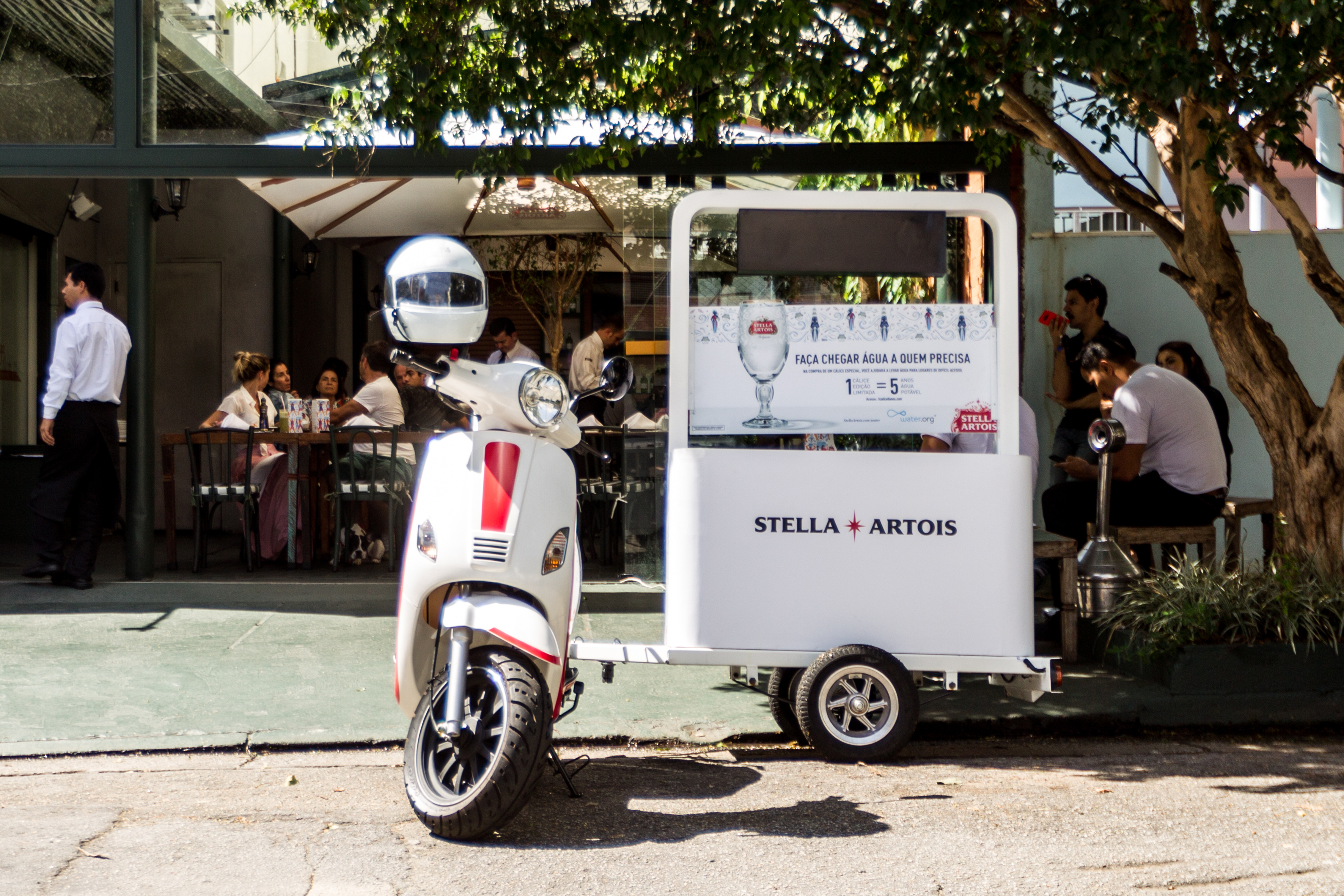 We had the challenge of taking to the consumer, the outdoors sale of Stella Balad's special chalices, out of the conventional POS.We created a small, charming and stylish Vespa Scooter that could ride all around the city of São Paulo, informing and selling the special Stella Artois chalices.